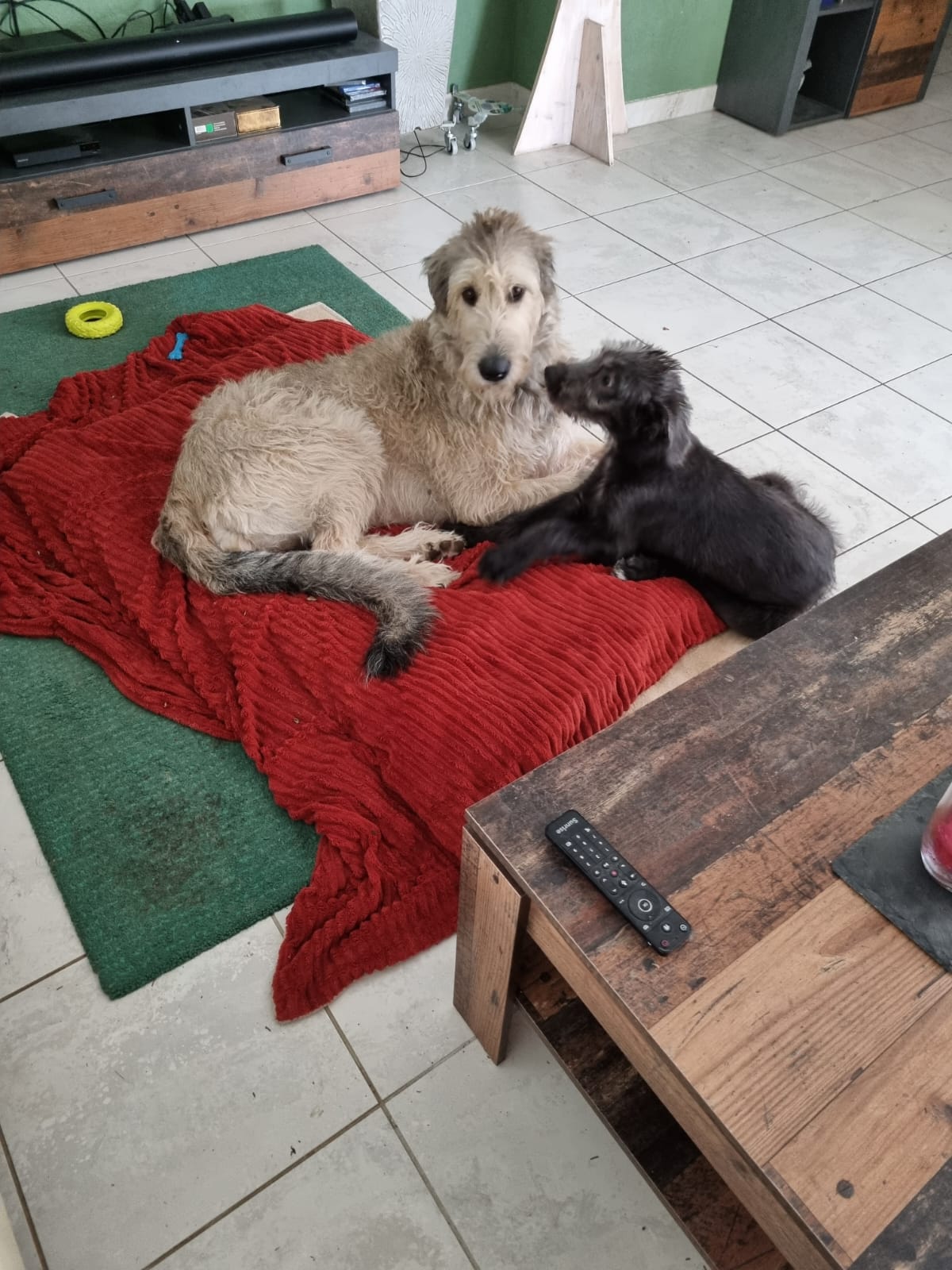 Capone lebt nun in der Schweiz bei Beatrix, heißt jetzt Phelan und durfte mit Freya sich sehr gut einleben. Zwischenzeitlich ist Freya leider im Hundehimmel und er hat wieder einen Spielgefährten bekommen, einen Sohn von Biden, er heißt Grada von Butchers Garden. Er liebt Hundeschule, ist sehr lernwillig und bringt seinem kleinen viel bei.